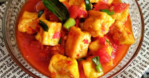 7. Masak tahu asam pedas manis hingga kuah meresap dan matang. Angkat.